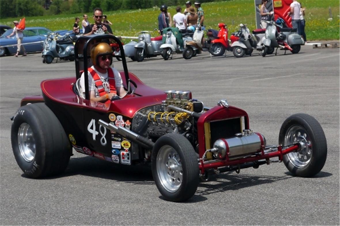 Mit knatternden Motoren versuchten die Fahrer in ihren Oldtimern mit mehr oder weniger Erfolg die Achtelmeile im Rennen zu bestreiten.