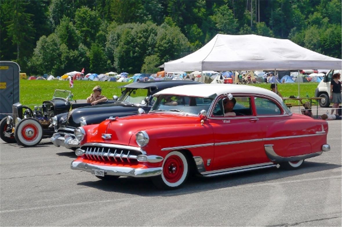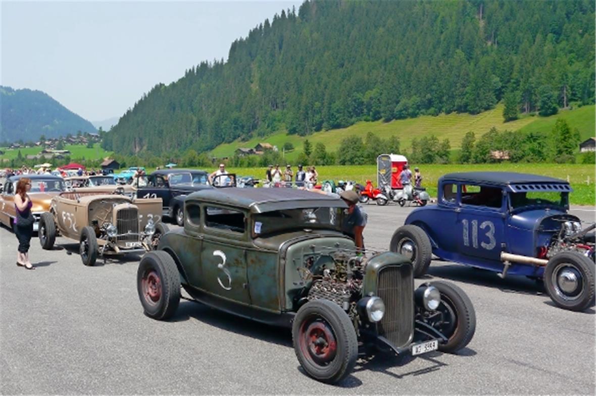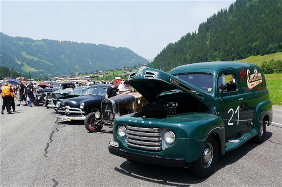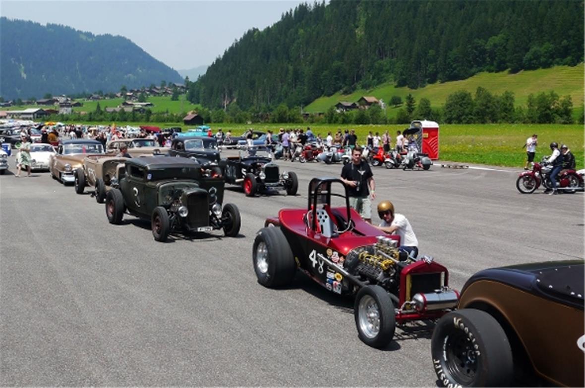 Am Freitag knatterten über 100 alte Autos durch das Simmental hoch nach St. Stephan. Langsam nahm die Show auf dem Flugplatz Gestalt an. Der eine oder andere Oldtimer zeigte im Simmental seinen Willen und blieb einfach stehen, wie in alten Zeiten. Auch wenn das manchen modernen Strassenbenützer ärgerte, hat der Event gezeigt, dass die Verlässlichkeit der Fahrzeuge in den letzten fünfzig Jahren wesentlich zugenommen hat und der Benzinverbrauch von damals 40 Liter und mehr pro hundert Kilometer auf nur 5–10 Liter gesunken ist!