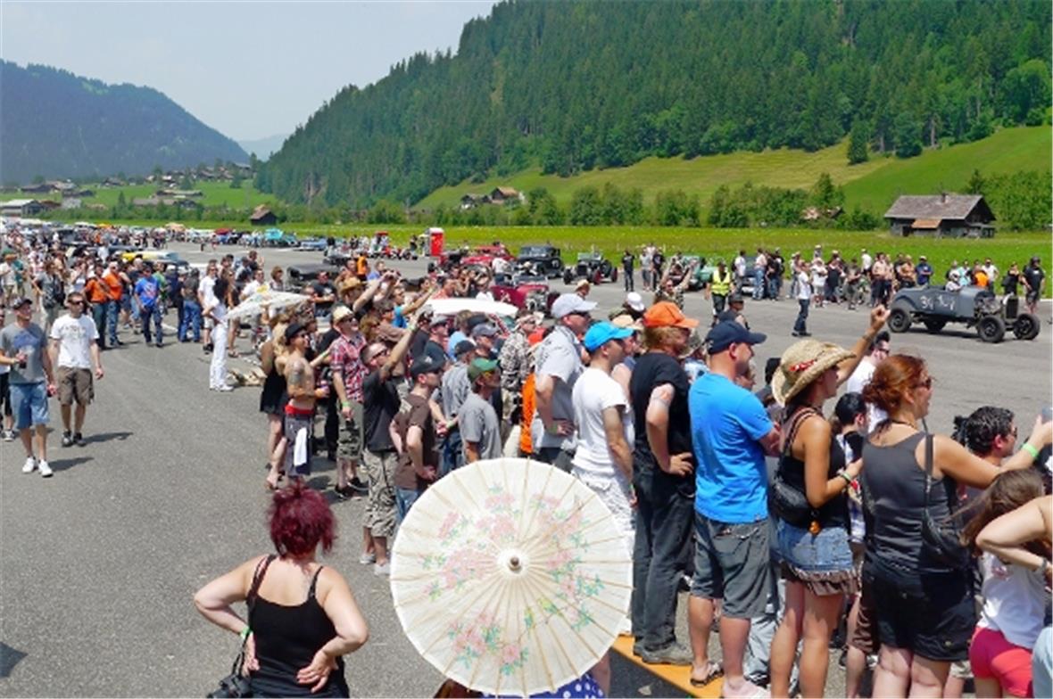 Über 5000 Besucher aus der ganzen Welt haben den Event auf dem Flugplatz besucht. Die Marktstimmung, zwischen Oldtimern und Festzelten erinnerte an die späten 60er Jahre. Jung und alt, bunt gemischt, flanierte in weiten Röcken, hoch gesteckten Frisuren, Dächlikappen, Knickerbockern mit Hosenträgern, und liess sich von Rockmusik aus alten Zeiten berieseln.