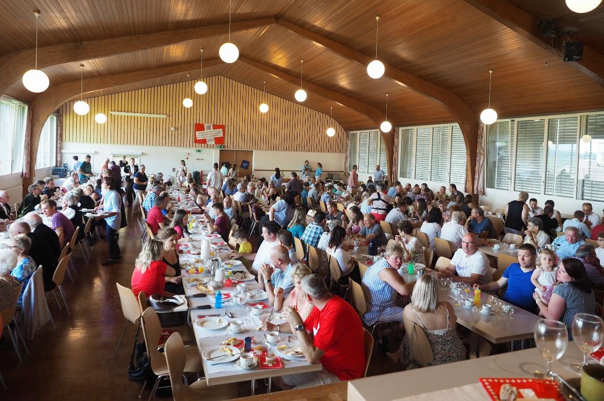 Vor den Feierlichkeiten durften sich die Gäste am reichhaltigen und mit einheimischen Produkten angebotenen Brunch stärken. Der Brunch fand grossen Anklang, die Halle war bis auf den letzten Platz gefüllt. Sicherlich trug dazu der Besuch von Bundesrat Guy Parmelin bei, der dieses Jahr die Festrede zum 1. August hielt.
