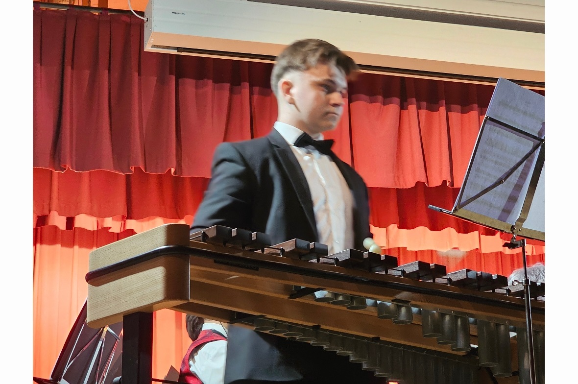 Nach einer kurzen Umbaupause setze dann das Kern-Ensemble, die Musikgesellschaft Wimmis, das Programm fort. Wieder und wieder glänzte das Wimmiser Orchester, dieses Mal erkennbar mit Spielfreude, ausgeprägtem musikalischem Können und einer grossen Portion auch szenischem Witz. Nach «Appalachian Overture» (eher amerikanisch geprägt) und «Biffo’s March» (einem fast spätbarock wirkenden Marsch), folgte das «Tuba Concerto Espanõl» mit dem ersten Solisten, Christoph Sigrist. Er gab an der Es-Tuba eine hochvirtuose und für das sehr tief angelegte Instrument überraschend strahlende Vorstellung. Ihm folgte dann gegen Ende ein höchst belebender Slapstick-Rausch der beiden Xylophon-Virtuosen und Percussionisten Fabian Jager und Julian Jägers.