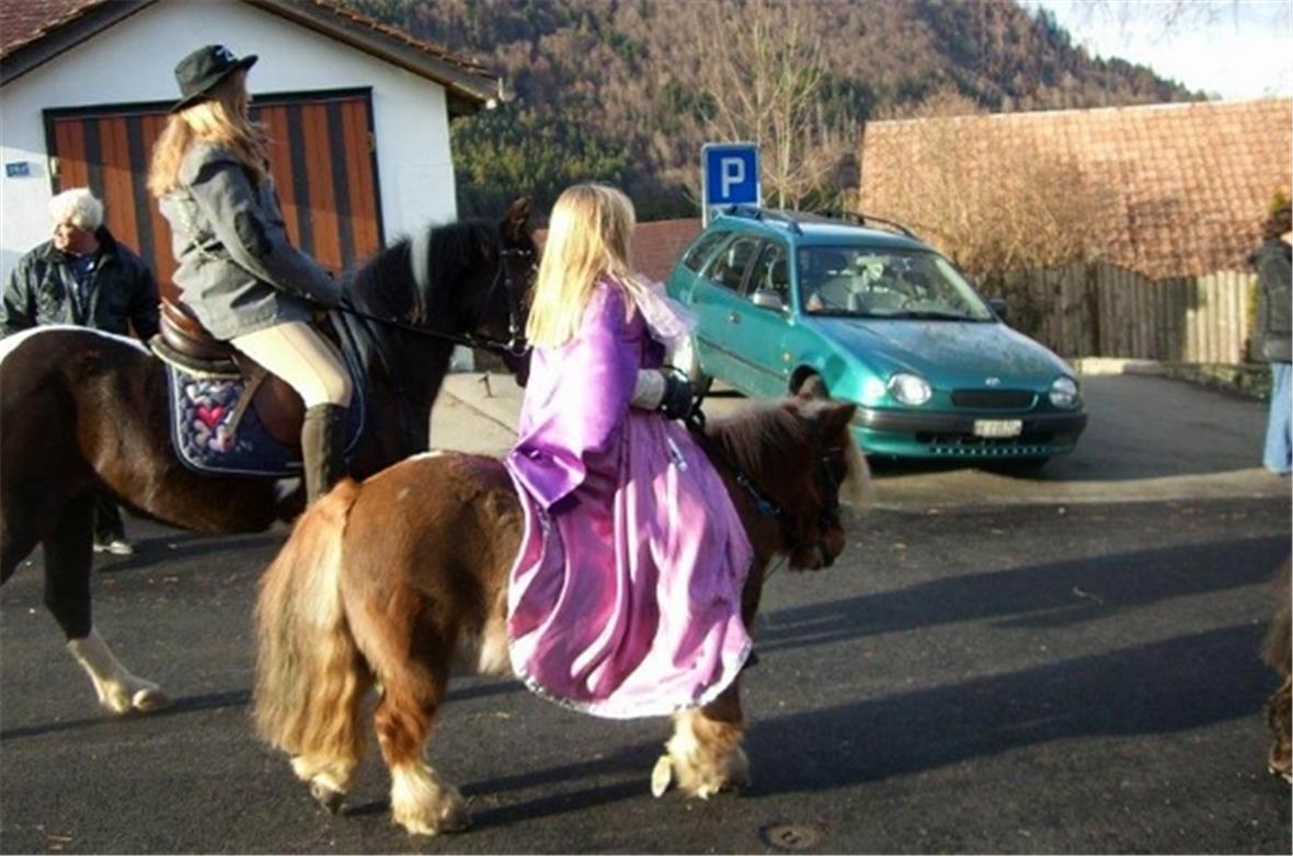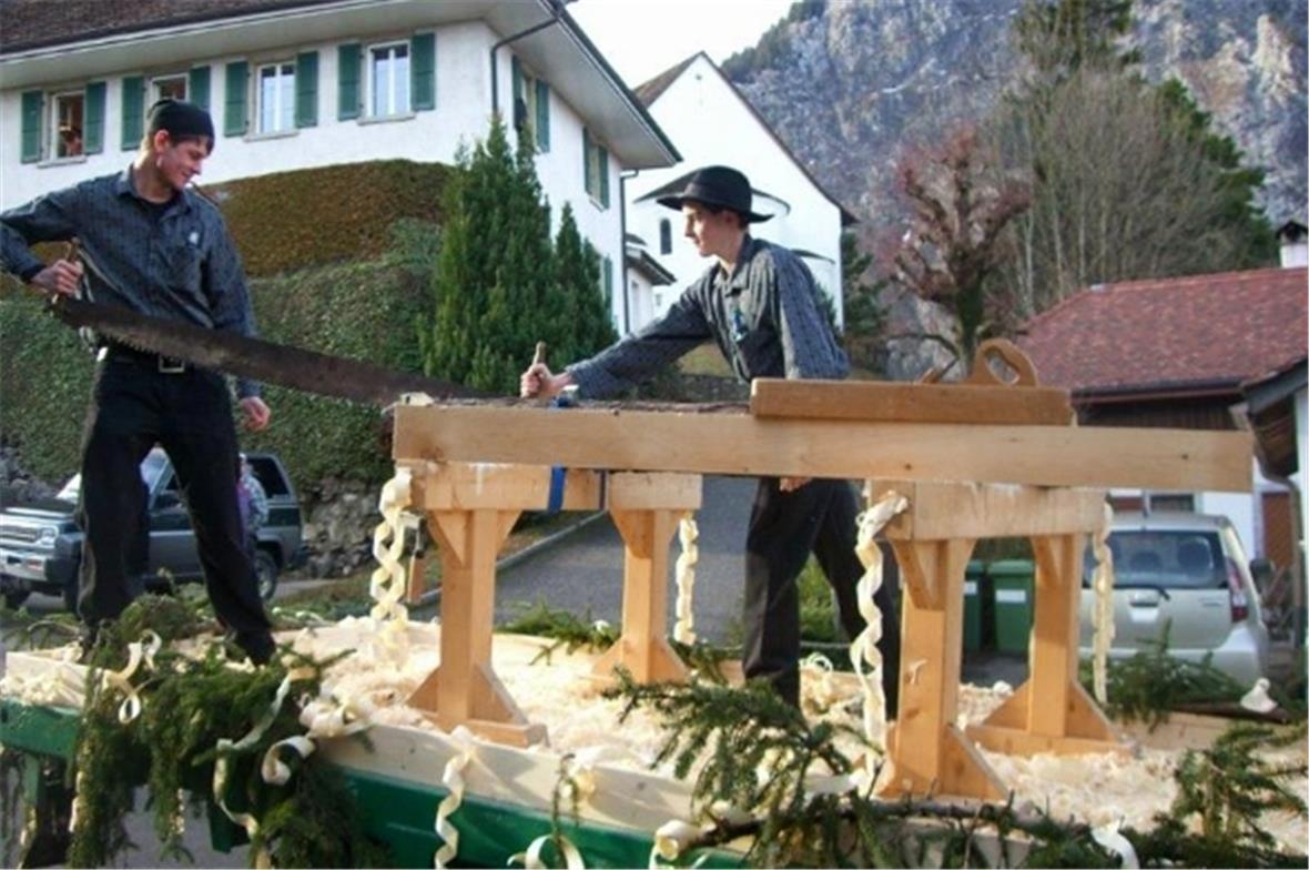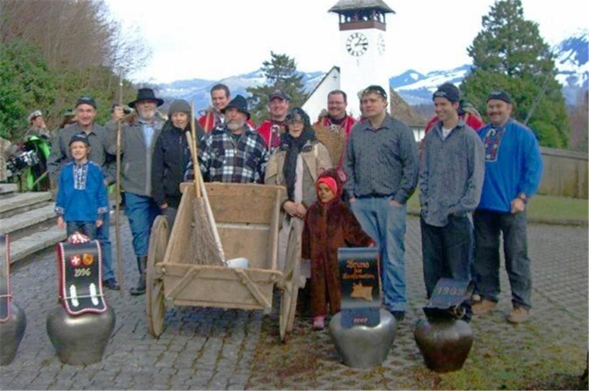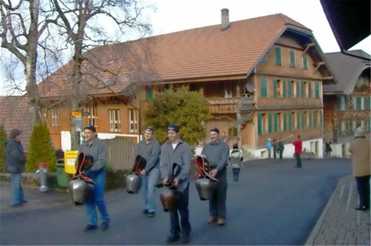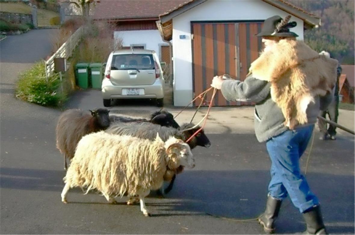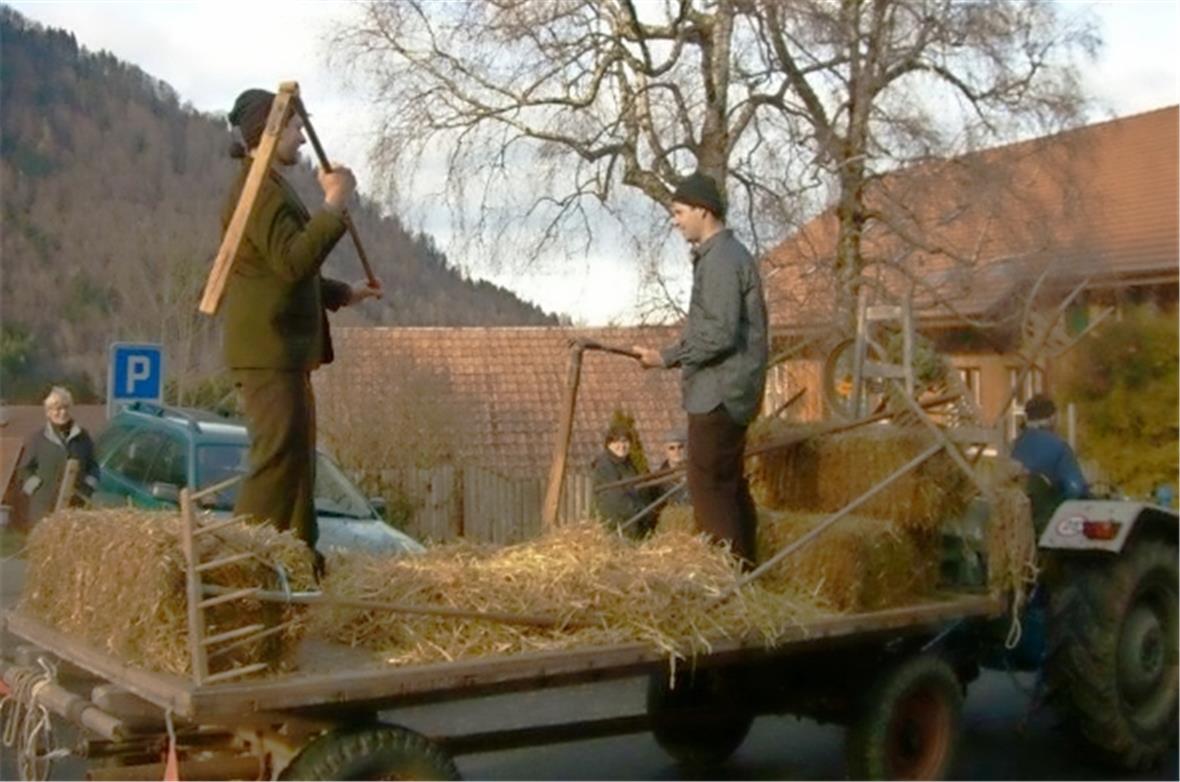 Der Umzug formierte sich unterhalb des Pfarrhauses. Vorweg die Mitglieder der Guggenmusik «Schattebööggle in ihrer fantasievollen Kleidung, dann ein paar mutige Junioren vom Rollhockeyclub, die «Trychlerfründe» und vier «Geislechlöpfer» in ihren knallroten Burgunder. Ein Wagen auf dem noch nach alter Sitte mit den Flegeln gedroschen wurde und ein Wagen mit wunderschönen «Hobelspänen» verziert und zwei sägende Männer mit einer Waldsäge. Alles Sachen, die viele Junge gar nicht mehr kennen. Immer wieder schön und erfreulich sind die Ponys und Pferde des Reitstalls «Lilihof». Auch die historischen Gestalten aus Wimmis fehlten nicht. Den Abschluss des Umzuges machte Urs Knuchel mit seinen Heideschnucken-Schafen.