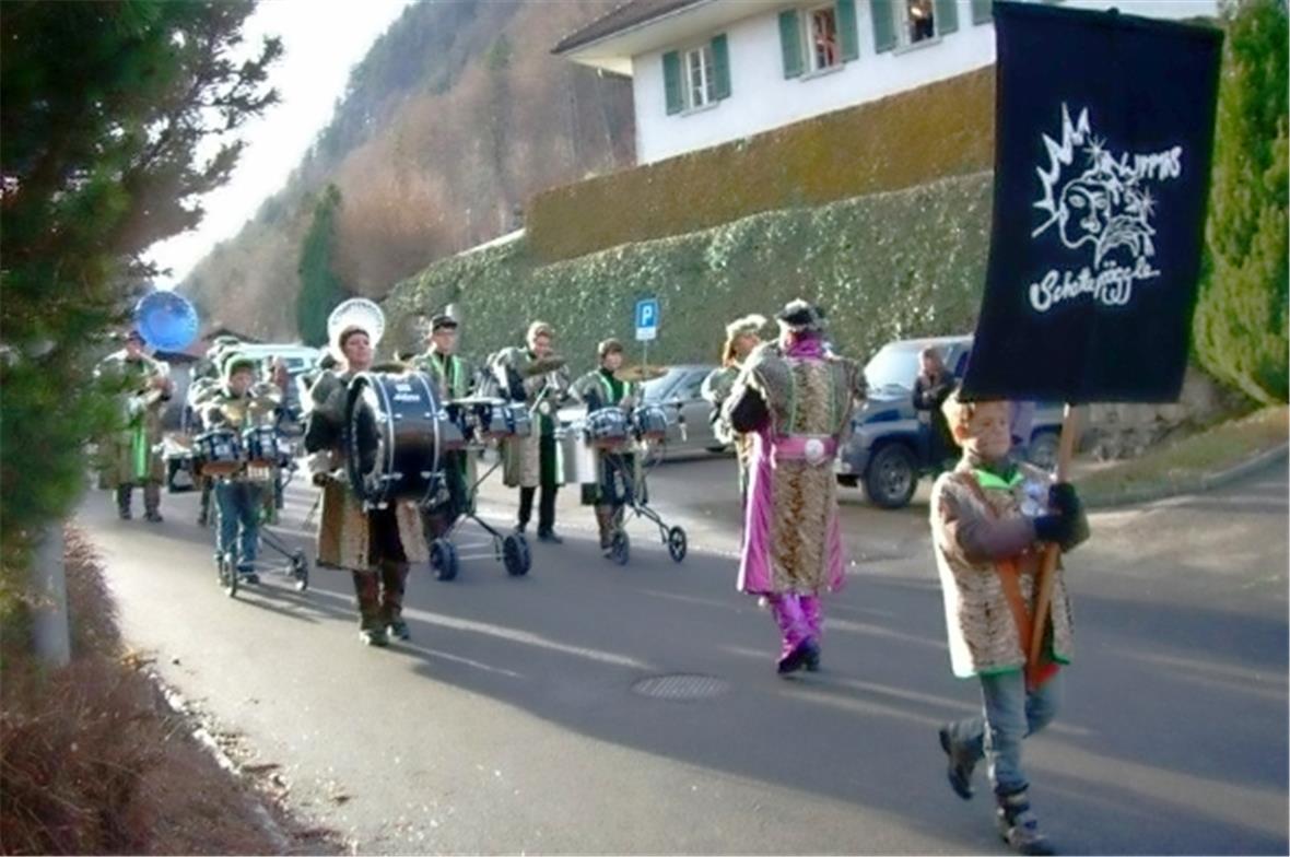 Unterhalb des Schlosses Wimmis fanden sich Interessierte ein. Der Umzug formierte sich unterhalb des Pfarrhauses. Anschliessend begann beim Schulhaus der Kindernachmittag.