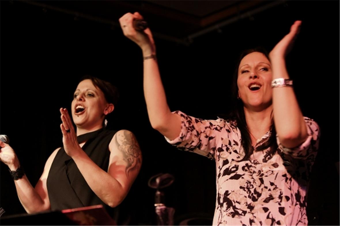 Für dieses Jahr haben sich die beiden Schwestern etwas Besonderes einfallen lassen: «Wir feiern heuer das zehnjährige Jubiläum und deshalb ist der heutige Abend speziell», begrüsste Babs Moser ihre gut 80 Gäste im originell geschmückten Löwen-Sääli während dem obligaten Apéro-Cüpli. «Ab dem zweiten Set dürft ihr tisch- oder gruppenweise einen Song wünschen und so den Abend mitgestalten», gab Sandee die Spielregeln bekannt. So kam es, dass eine zehnköpfige, bunt zusammengewürfelte «Wybergruppe» aus dem Obersimmental nach dem vorzüglichen Fondue Chinoise die Köpfe über der Wunschliste zusammensteckte und sich gemeinsam für einen Song zu entscheiden hatte. Keine einfache Sache, standen doch über 50 tolle Titel zur Verfügung und sassen immerhin zehn Frauen am Tisch!