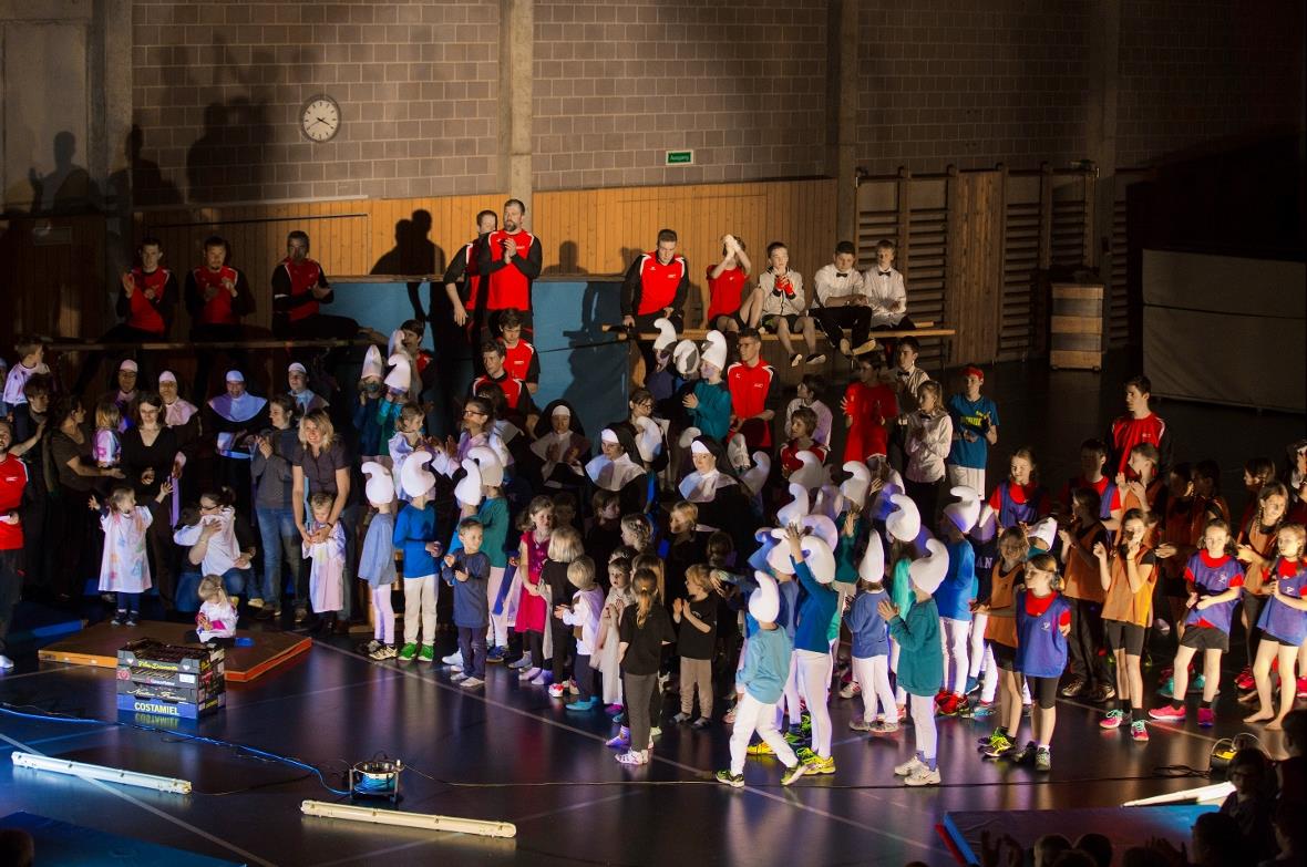 Das Programm am letzten Wochenende, 18./19. März 2017, hatte einiges zu bieten: Die KITU-Kinder präsentierten «Die Eiskönigin mit Schneemann Olaf» und das «Dschungelbuch». Das MUKI begeisterte mit der erwähnten Spuk-Nummer «Ghostbusters». Eine eindrückliche Choreographie boten die 40 Schlümpfe mit ihren blauen Kleidern und blauen Gesichtern und den bekannten weissen Hüten.