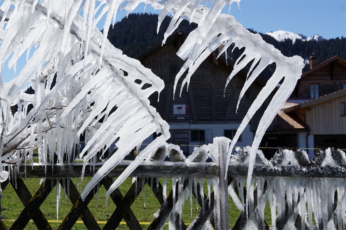 «Das habe ich zum ersten Mal ausprobiert», sagt Durand und hat es bei der aufgebrachten Wassermenge vielleicht etwas zu gut gemeint. Oder vielleicht auch nicht – denn die Blüten haben die zwei frostkalten Nächte im dicken Eismantel überwiegend gut überstanden und der eingefrorene Baum mit seinen der Schwerkraft geradezu trotzenden Eiszapfen war ein echtes Kunstwerk. Und das bekommen selbst die Obst-Profis am Bodensee nicht hin.
