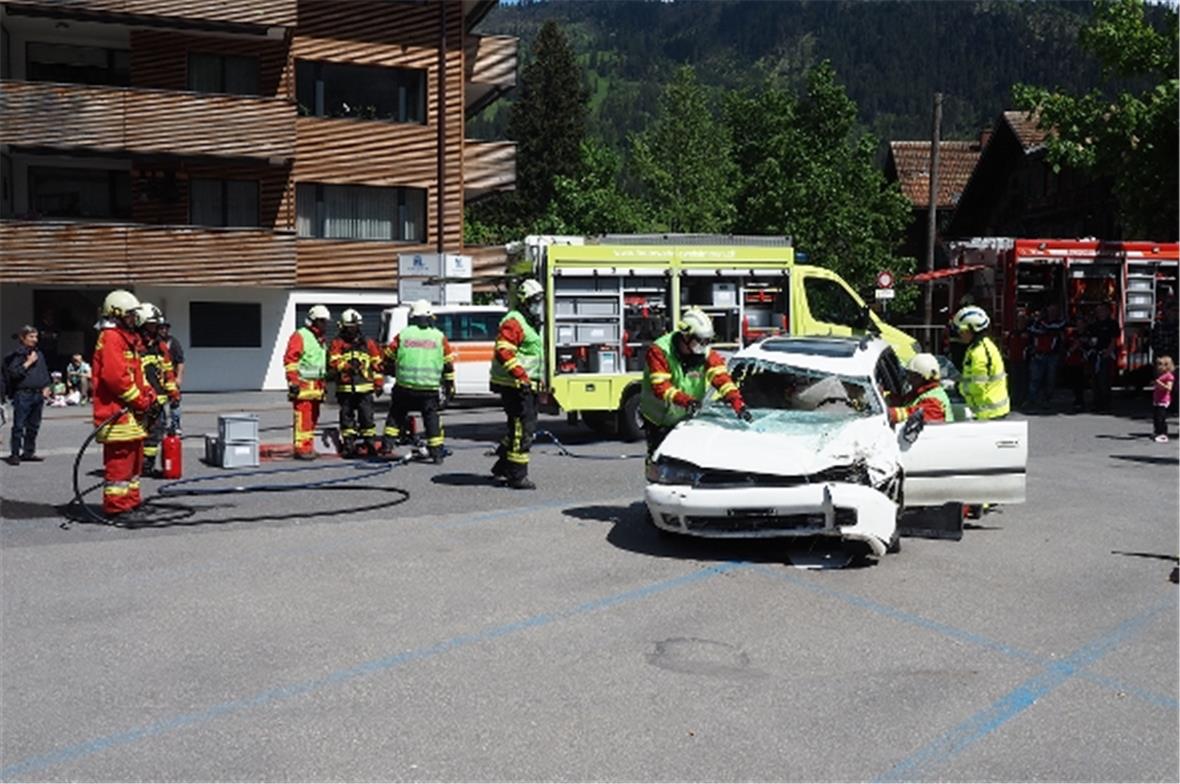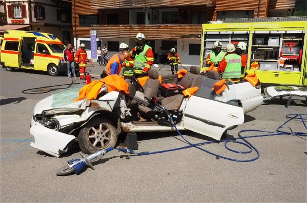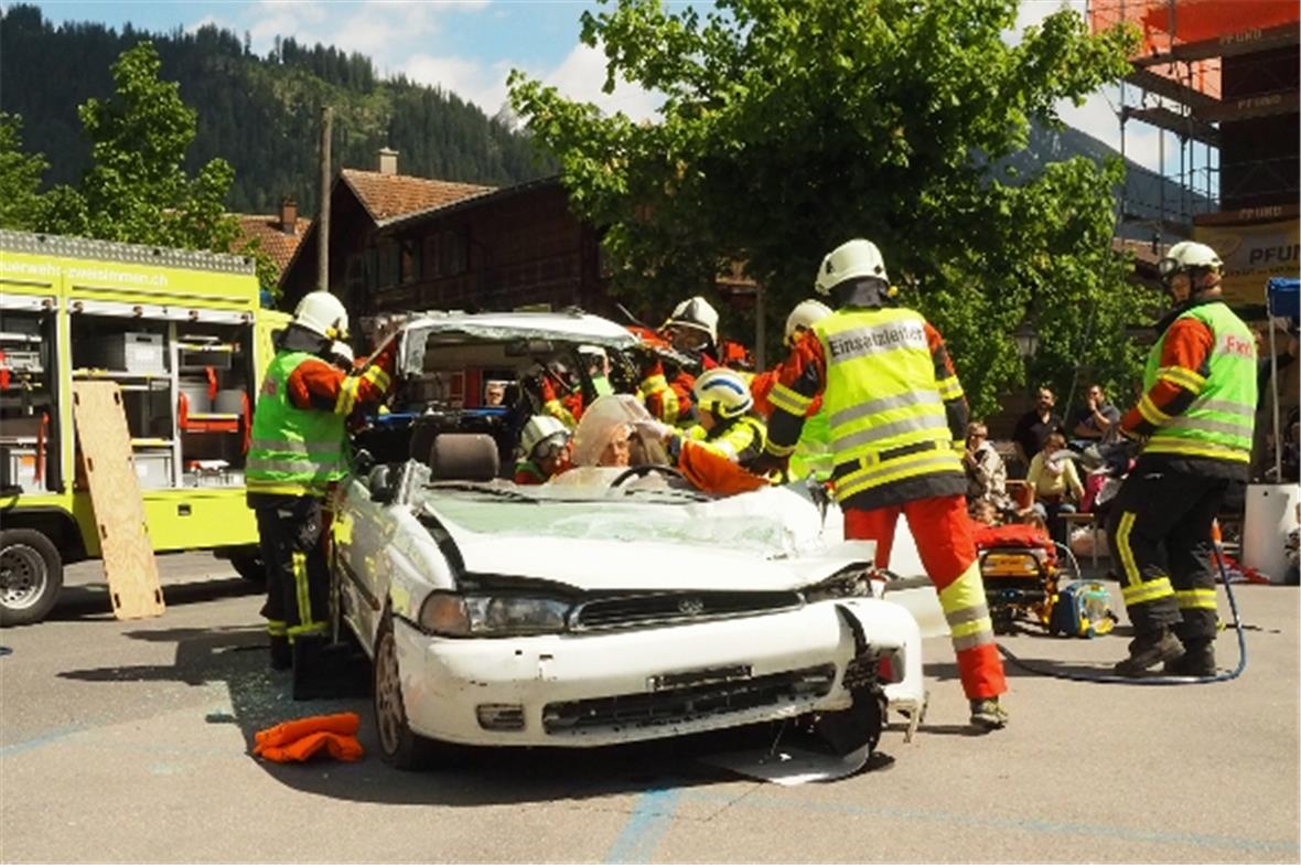 Am Samstagnachmittag wurde auf dem Bärenparkplatz in Zweisimmen das neue PbU-Fahrzeug der Wehrdienste Zweisimmen mit einem Fest offiziell eingeweiht. Im Anschluss demonstrierten die Rettungsdienste an einer kleinen Übung den Besuchern die Bergung einer verletzten Person aus einem verunfallten Fahrzeug.