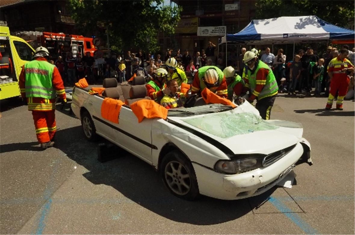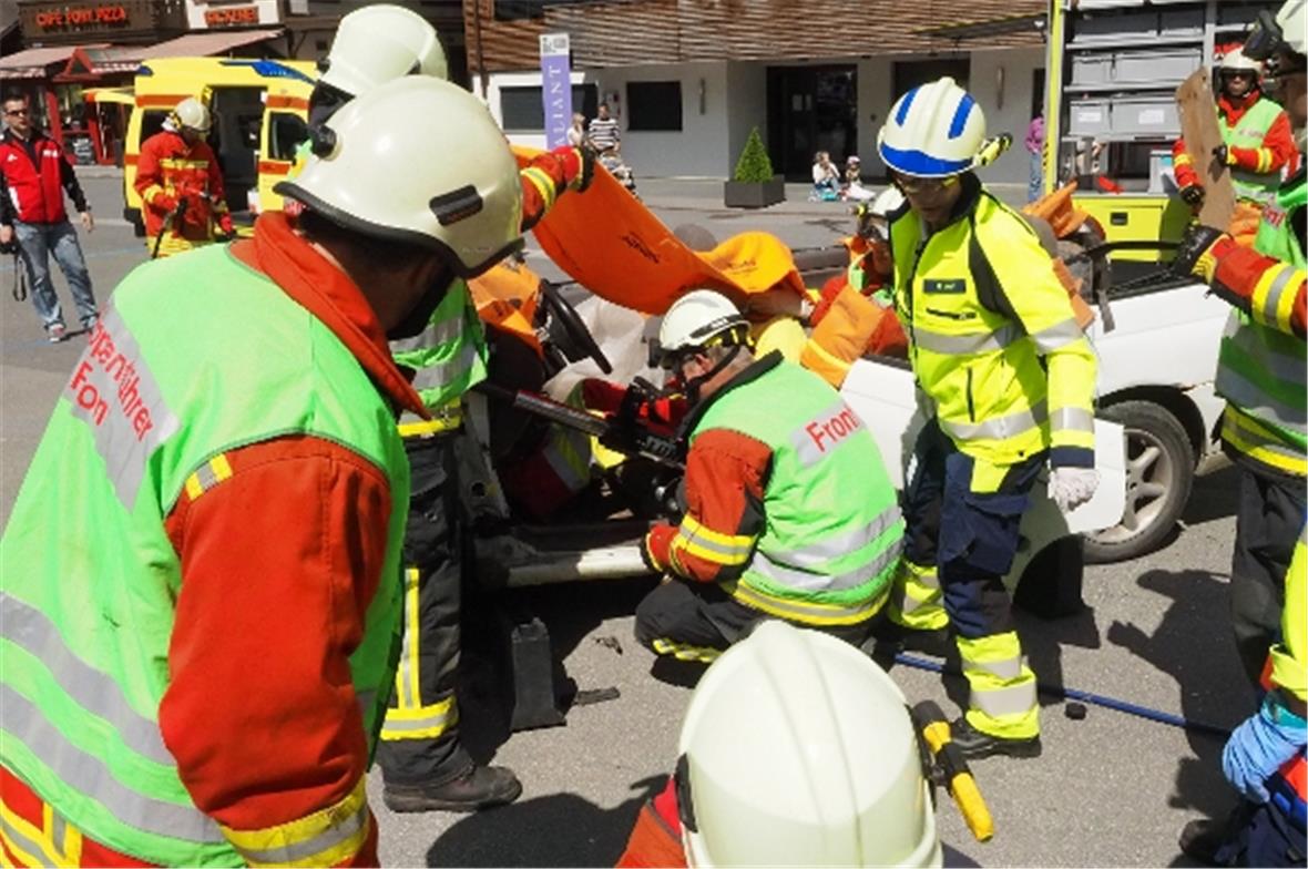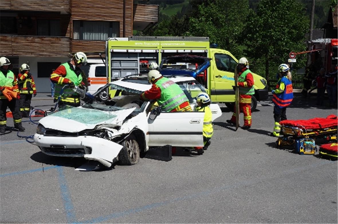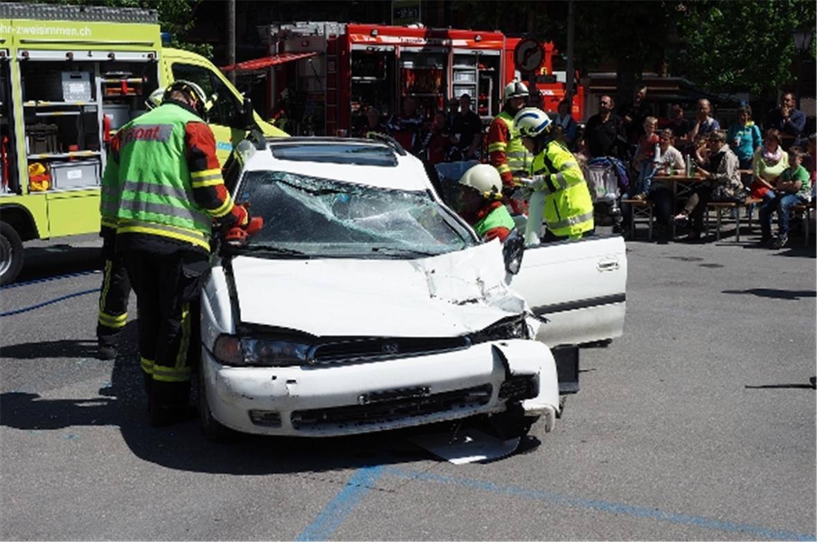 Am Samstagnachmittag wurde auf dem Bärenparkplatz in Zweisimmen das neue PbU-Fahrzeug der Wehrdienste Zweisimmen mit einem Fest offiziell eingeweiht. Im Anschluss demonstrierten die Rettungsdienste an einer kleinen Übung den Besuchern die Bergung einer verletzten Person aus einem verunfallten Fahrzeug.