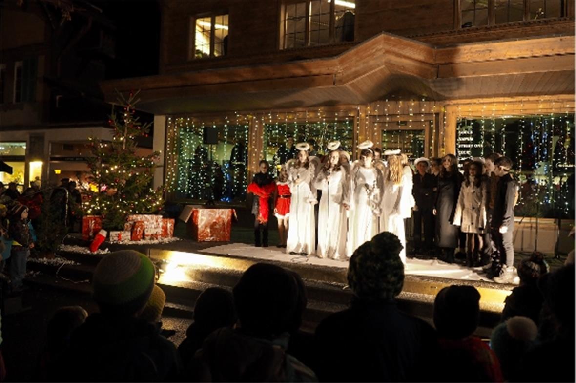 Auch wenn der Schnee für ultimatives Weihnachtsgefühl fehlte, kamen zahlreiche Zweisimmer und Gäste bei den milden Temperaturen. Dieses Jahr sangen und tanzten Schüler und Schülerinnen der Schule Zweisimmen an der Bahnhofstrasse und trugen so mit der Musikgesellschaft Zweisimmen zu einer schönen Weihnachtsstimmung bei.