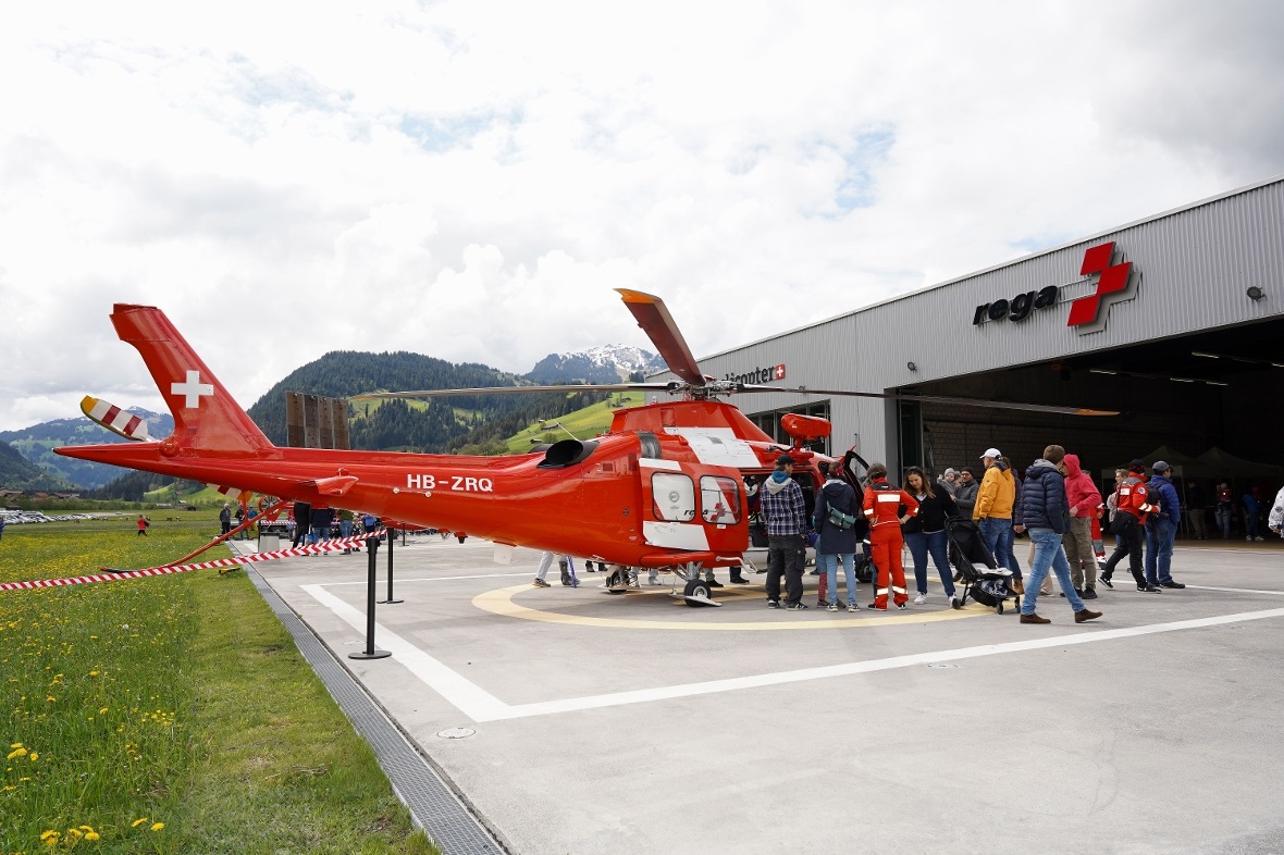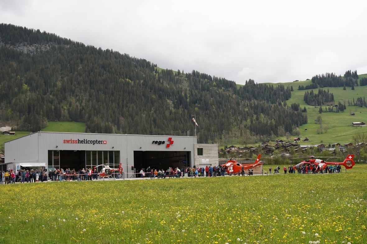 Mit rund 2600 Besuchern entwickelte sich der Tag der offenen Tür zum Grossanlass – trotz eher durchwachsener Wetteraussichten. Dennoch: Ganz besonders Familien mit Kindern nutzten die Gelegenheit, sich die Helikopter von Rega und Swiss Helicopter aus der Nähe anzusehen und von Piloten, Ärzten und Sanitätern mehr über die Arbeit in der Luft und am Patienten zu erfahren.