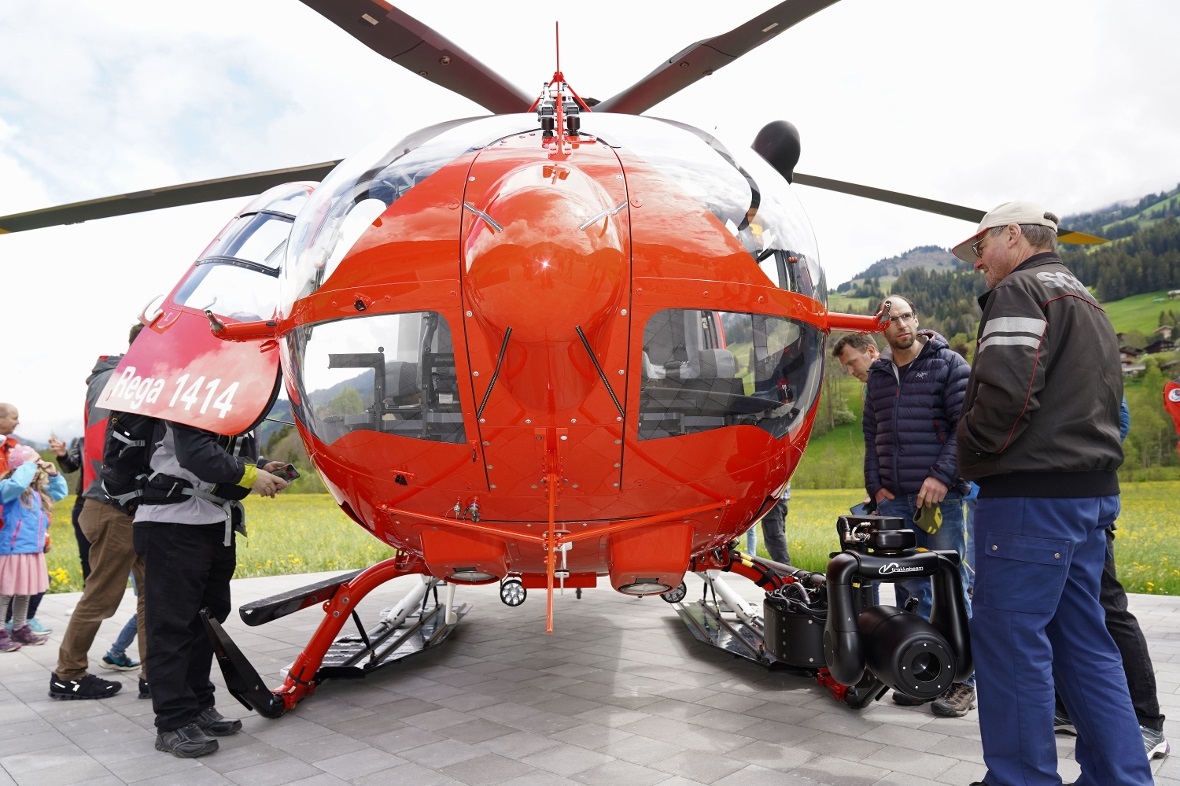 Auf der Rega-Seite stand nicht nur der in Zweisimmen stationierte «alte» Helikopter Da Vinci vom Hersteller AgustaWestland zur Einsicht und zum Probesitzen bereit. Auch das neueste Modell im Dienste der Rega, der Airbus Helicopter H145 konnte in Augenschein genommen werden.