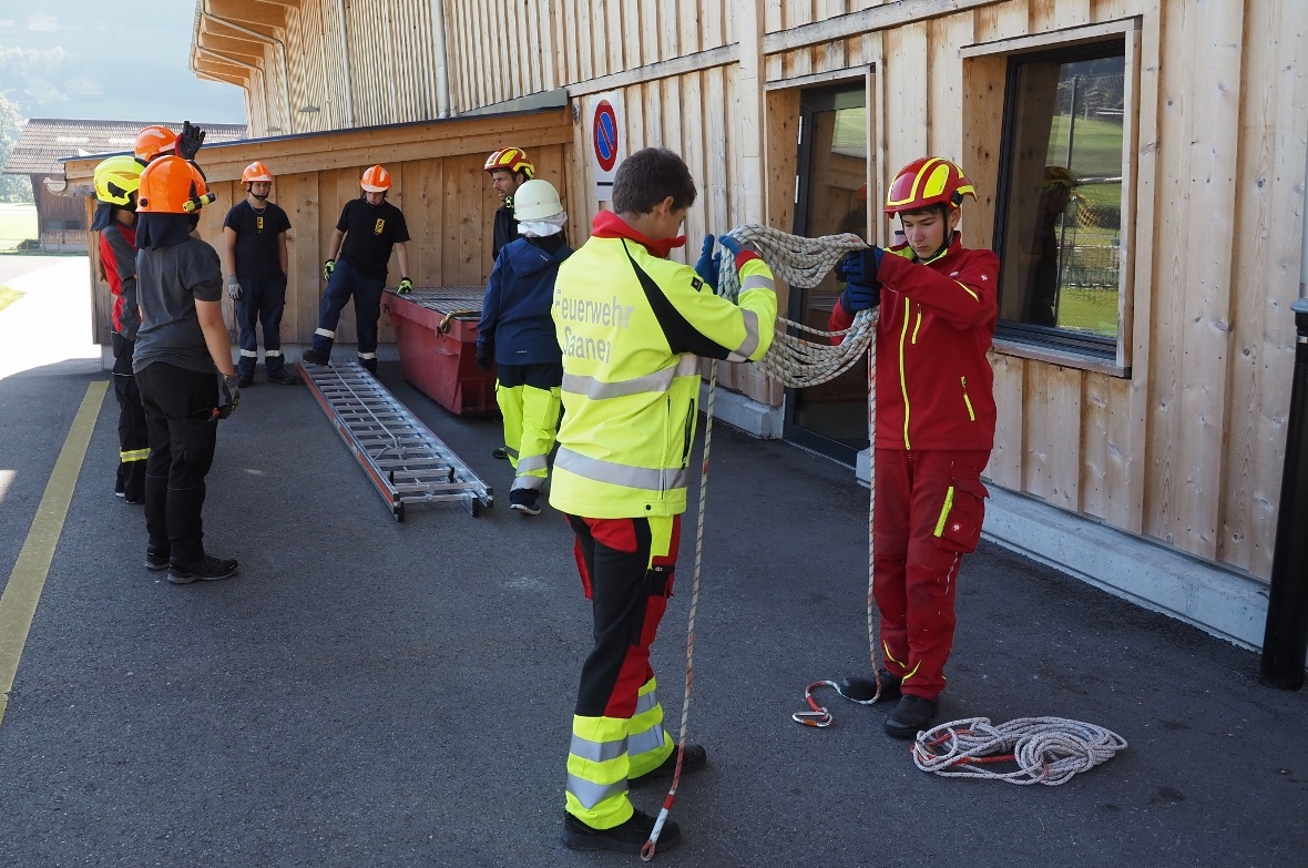 Bei diesen Übungen mussten sie alles selber organisieren. Es galt das Problem zu erfassen, einen Chargierten (Verantwortlichen) zu bestimmen, der das Kommando hat und dann das Ereignis zu bewältigen. Die Instruktoren standen dabei nur beratend zur Verfügung. Selbstverständlich gingen die Jugendlichen mit viel Respekt an diese Abschlussübungen, denn sie gelten als eine Art Abschlussprüfung. Das schöne bei diesem «Test» ist, dass es den Jugendlichen eigentlich immer gelungen ist, das Problem zu lösen. Vielleicht läuft noch nicht alles perfekt und es gibt Vorschläge, wie man es besser oder einfacher hätte lösen können. Umso erfreuter sind sie dann jeweils, wenn sie sehen, was sie nach einer Woche alles gelernt haben und wie die Zusammenarbeit funktioniert. Darauf sind sie dann ganz stolz und dürfen das zu Recht auch sein.
