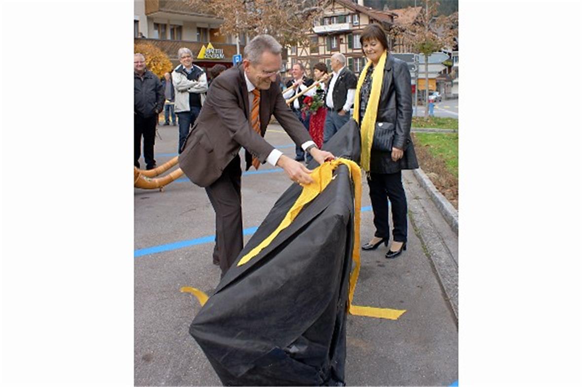 Mit einer kleinen Jubiläumsfeier wurde am Samstagvormittag in Anwesenheit von aktuellen und ehemaligen Behördemitgliedern der Mätteli-Platz vor dem Gemeindehaus in «Oberrot-Platz» umbenannt. Gemeindepräsidentin Christiane Griessen und Bürgermeister Werner Strack enthüllten gemeinsam eine neue Signalisationstafel und eine Sitzbank im Zweisimmen-Look.