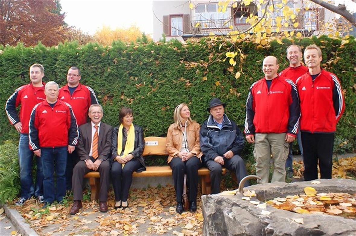 Die Gäste revanchierten sich ebenfalls mit der Übergabe einer Ruhebank, die ihren Standort beim Brunnen an der Kreuzung Farbgasse/Lerchgasse fand. Dort war zu Beginn der Partnerschaft vor zwanzig Jahren eine Linde gepflanzt worden, die sich inzwischen zum stattlichen Baum entwickelt hat.
