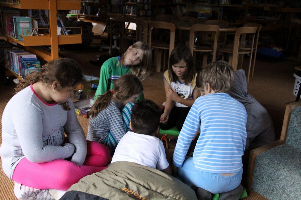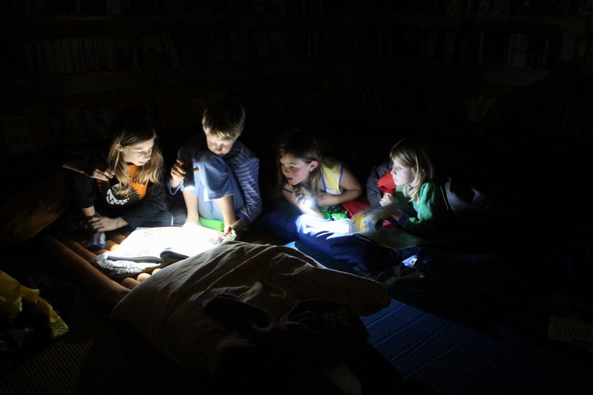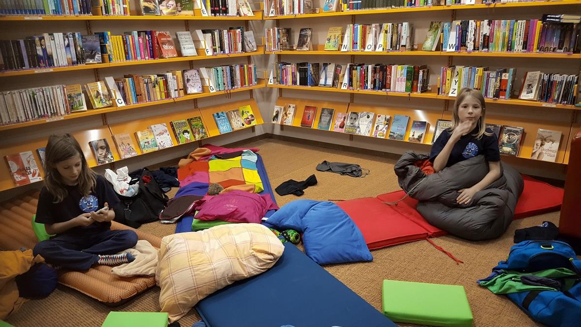 Glücklich und stolz bereiteten die Kinder nach der Rückkehr in die Bibliothek ihr Nachtlager zwischen den Büchergestellen vor. Bis Mitternacht durften sie noch Gesellschafts-Spiele austesten und danach lasen die meisten noch ein wenig im Dunklen mit den Taschenlampen.