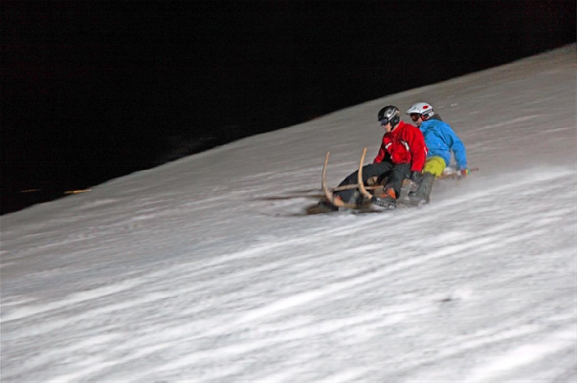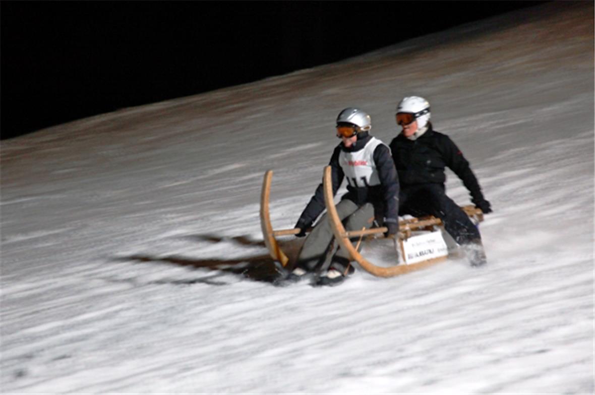 Nach rund einer Stunde verabschiedete sich Ueli Schmezer von seinen Fans und die nächsten zwei Rennen standen bevor. Zuerst nahmen die Mountainbike-Downhiller die 3.2 km lange Strecke unter die Räder. Leander Rankwiler gewann knapp vor Andy Schäfer, der das Rennen in den letzten drei Jahren jeweils klar dominierte. Für die Horeschlitten-Teams war das entscheidende Element die neu gestaltete Zielankunft. Auch sie mussten unten am Sternenrain, nach dem letzten Tor, eine scharfe Rechtskurve fahren und die letzten Meter zu Fuss zurück legen. Als Schnellste bewältigen die Oberwiler Andy Brunner/Hans Brunner den Lauf und gewannen mit sechs Sekunden Vorsprung.