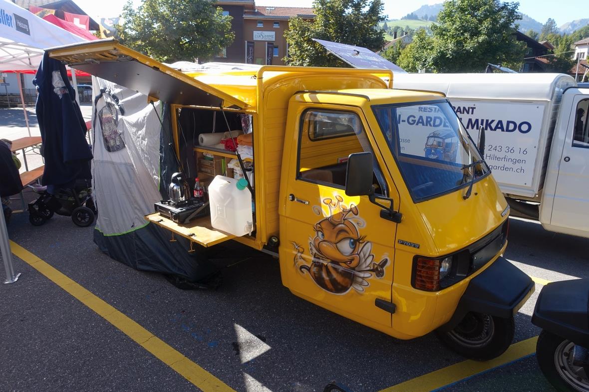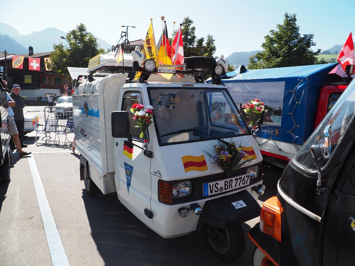 Sogar einige ausländische «3-Rad-Bienen-Fahrzeuge» fuhren ins Simmental. Viele verbrachten die Anfahrts- und Abreisenacht auf dem Camping Fankhauser. Ein Teilnehmer mit Caravan-Aufbau fuhr nachher sogar weiter nach Rom.