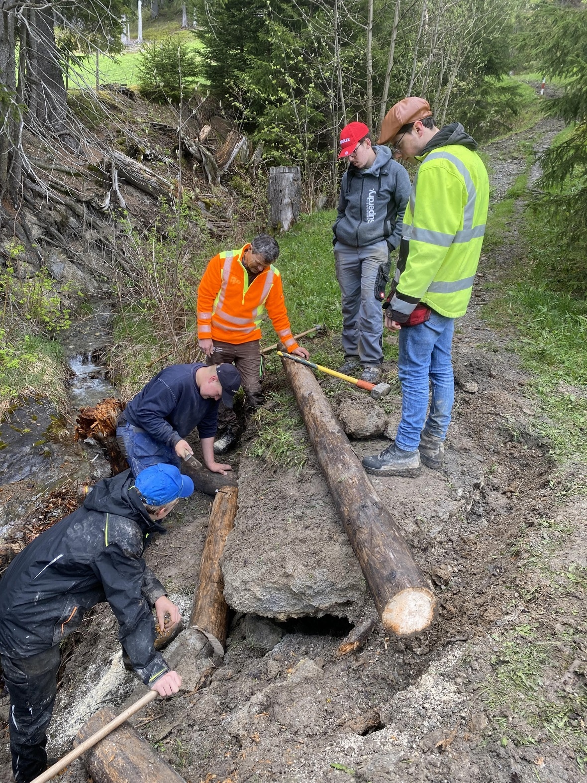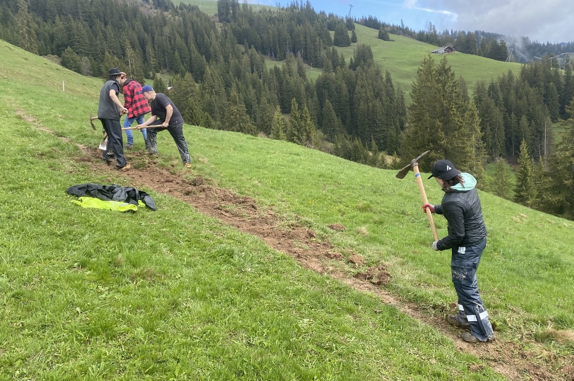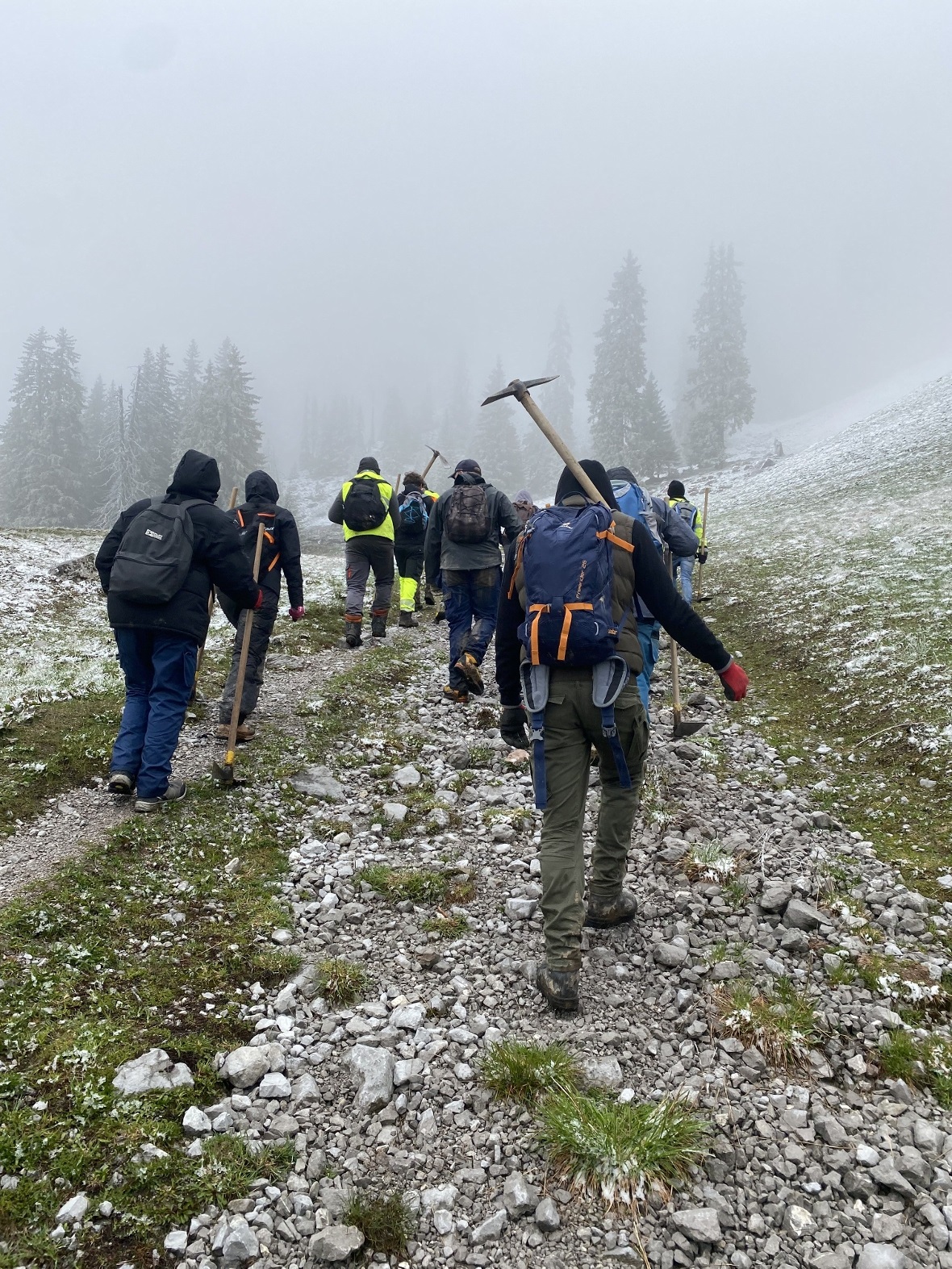 Trotz den bitterkalten und nassen Verhältnissen Mitte Mai bewiesen die Lernenden viel Moral und trotzten den schwierigen Wetterbedingungen, ohne mit der Wimper zu zucken. Peter Friedli fand nur lobende Worte für den Einsatz der motivierten und sympathischen Lernenden.