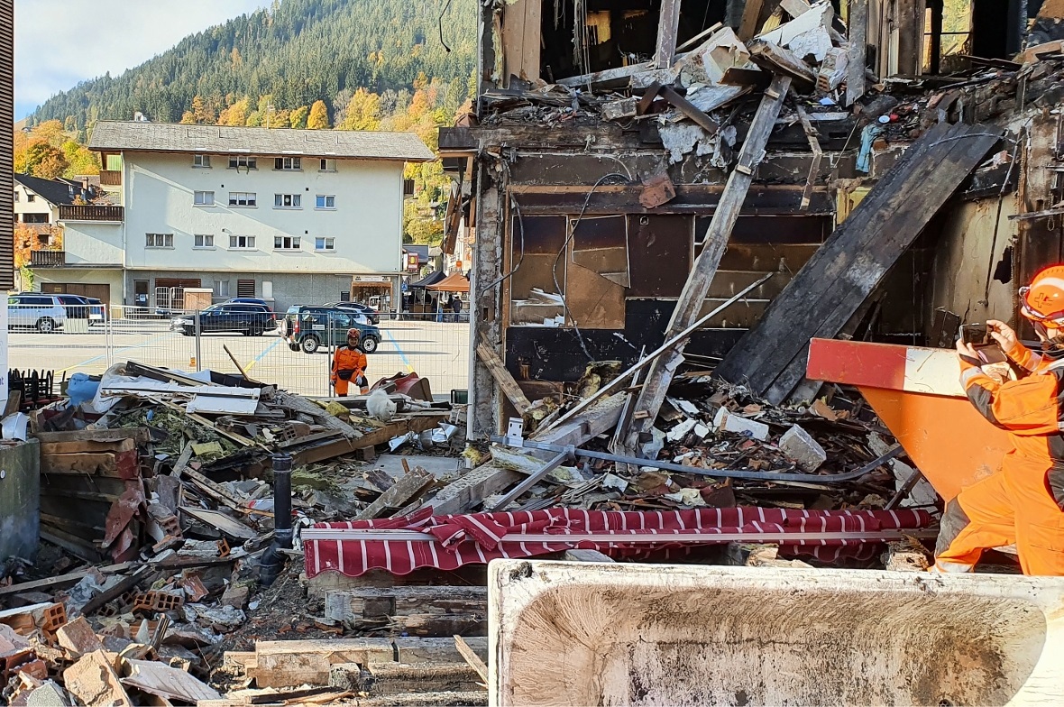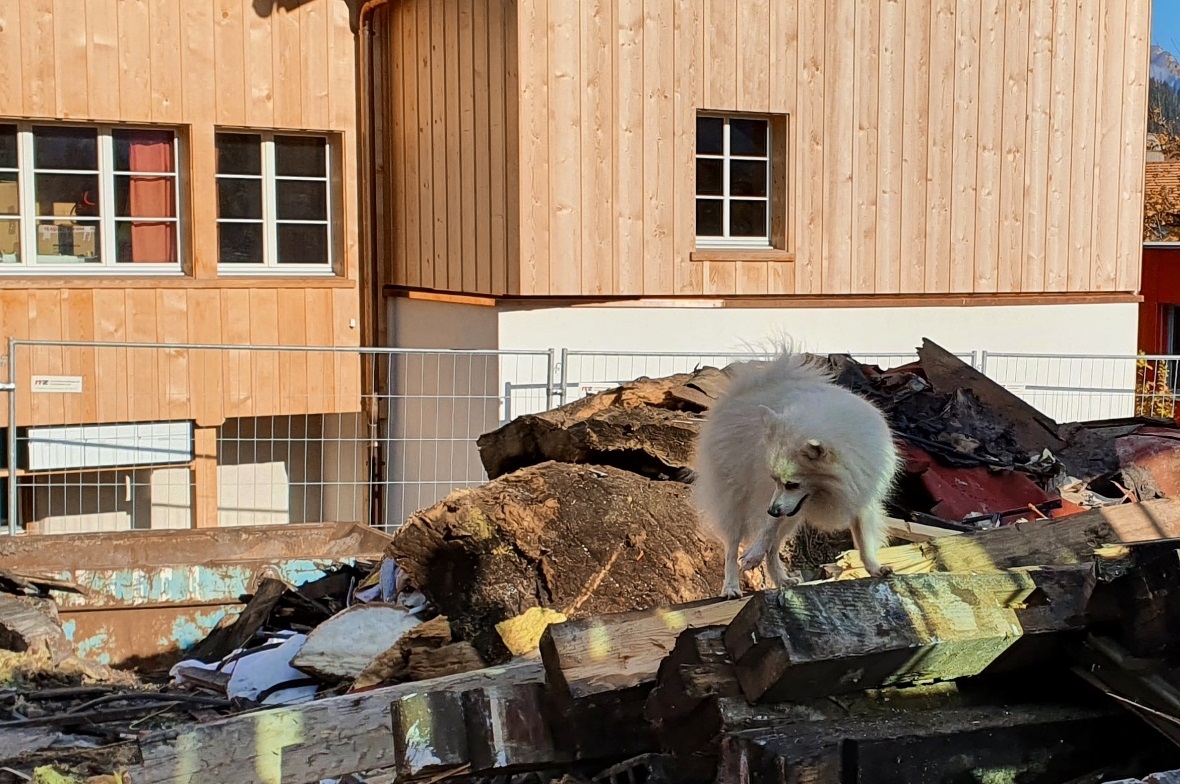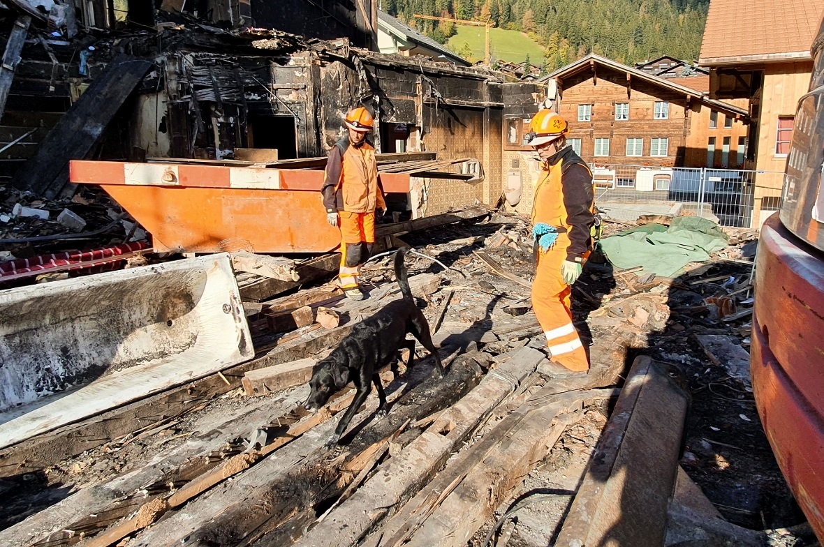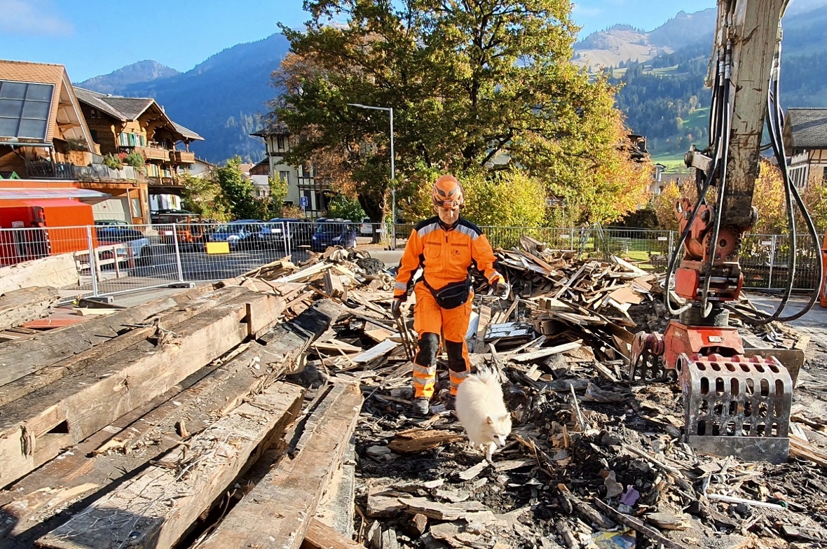 Am vergangenen Samstag, 23. Oktober trainierten fünf Rettungshunde mit ihren Führerinnen auf den Trümmern des Dorfbrandes von Zweisimmen.