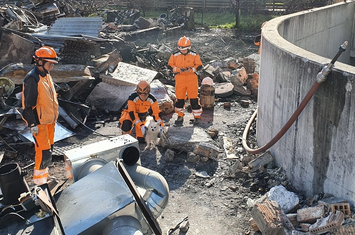 Rettungshunde trainierten in den Brandtrümmern