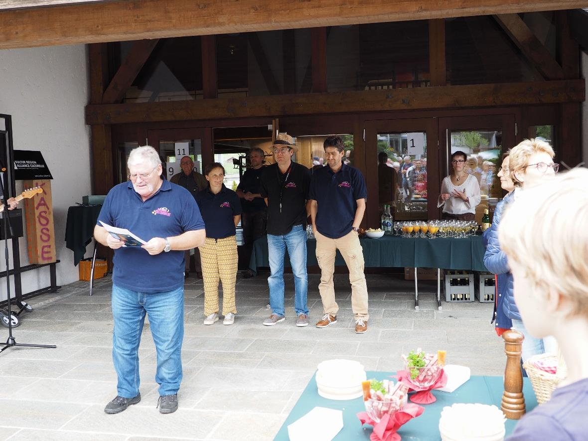 Ein besonderes Erlebnis war dieses Jahr der Alpsegen vom Kirchturm der reformierten Kirche. Weit hörbar rief der Senn Peter Lieberherr durch den eigens für den Alpsegen hergestellten Holztrichter «Gelobt seist du Herr Jesus Christ…». Er bittet damit um den Segen und Schutz für seine Alp. Der Alpsegen ist aber in früheren Zeiten auch eine Form der Kommunikation gewesen. Nach dem Einnachten, wenn die Arbeit getan war, wurde so den benachbarten Alpen mitgeteilt, dass alles in Ordnung ist. Die Tradition des Alpsegens wird ausserhalb unserer Region, in der Innerschweiz gepflegt, ist aber auch im Wallis bekannt, und wird durch so junge Sennen wie Peter Lieberherr wiederbelebt.