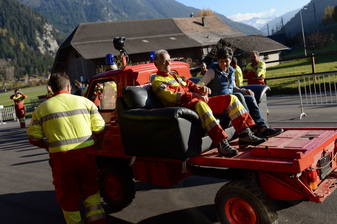 Die Schlussübung der Feuerwehr Zweisimmen stand ganz im Zeichen des abtretenden Kommandanten Peter Allemann. Anhand verschiedener Posten wurde sein Werdegang aufgezeigt und die verschiedenen Aufgaben der Feuerwehr auf humoristische Art nachgestellt.