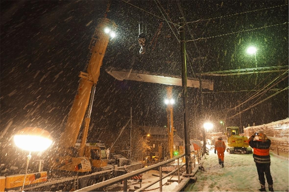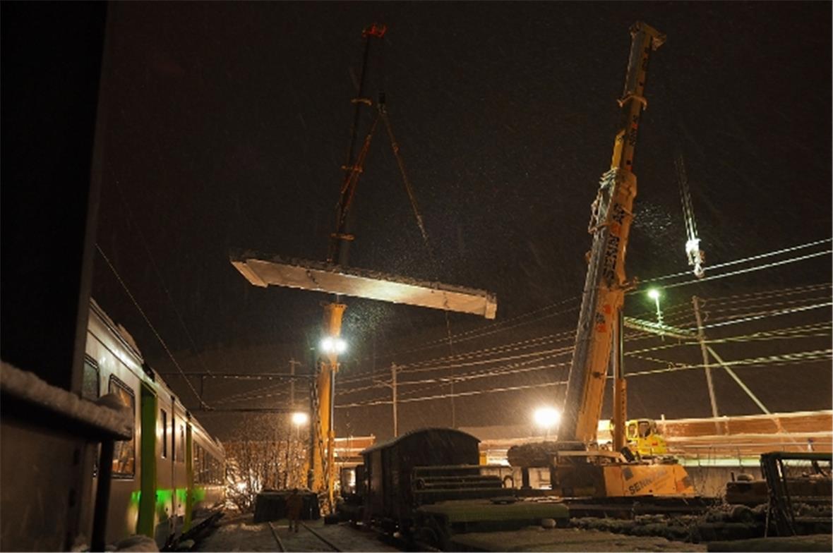 Zusätzlich zu den laufenden Arbeiten an den beiden Brücken beginnen Anfang März 2016 die Bauarbeiten im Bahnhofareal. Zuvor werden die Fahrleitungen und die Gleise im Bereich der Gleise 6 und 7 während mehreren Nächten demontiert.