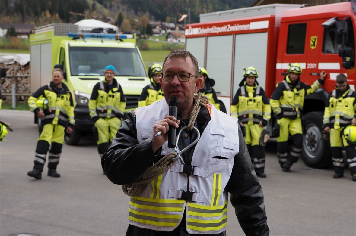 Die «Hauptübung» der Feuerwehr Zweisimmen am Samstag, 30. Oktober 2021 stand ganz im Zeichen der Verabschiedung des Vizekommandanten Stefan Buchs. Mit verschiedenen Posten wurde der Vizekommandant noch einmal gefordert. Die Posten zeigten die unterschiedlichen Tätigkeitsgebiete der Feuerwehr, waren aber nicht immer ganz ernst gemeint. Auch in die Vergangenheit wurde zurückgeblickt. Pünktlich zur Hauptübung durften die Feuerwehrangehörigen auch ein neues Fahrzeug in ihren Fuhrpark aufnehmen.