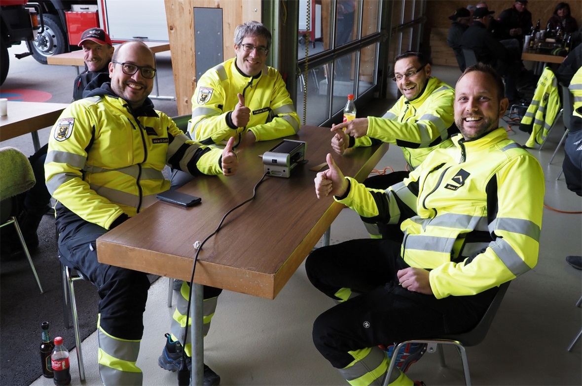 Gemeinsam durften oder mussten die beiden Ausscheidenden nun verschiedene Posten bewältigen. Beim ersten Posten wurde mit einem Abspracherapport und Führen eines Einsatzjournals begonnen, damit der Abend auch protokollarisch festgehalten werden konnte. Adrian Di Camillo war dafür der ideale Mann, denn er war in seiner Laufbahn bei der Feuerwehr Zweisimmen vor allem im Hintergrund und in der Administration tätig. Das Journal beginnt auch mit dem Eintrag um 13.22 Uhr: Beginn der Übung. Um 13.26 Uhr wurde dann versucht, mit der Feuerwehr Oberrot – der Partnergemeinde von Zweisimmen – in Kontakt zu treten, die zwar vor Ort an der Simmental Arena war, aber dies wurde den beiden noch nicht verraten. Jedenfalls gelang dies nur bedingt und Buchs bedauerte, dass er die Partner nicht persönlich sehen könnte…