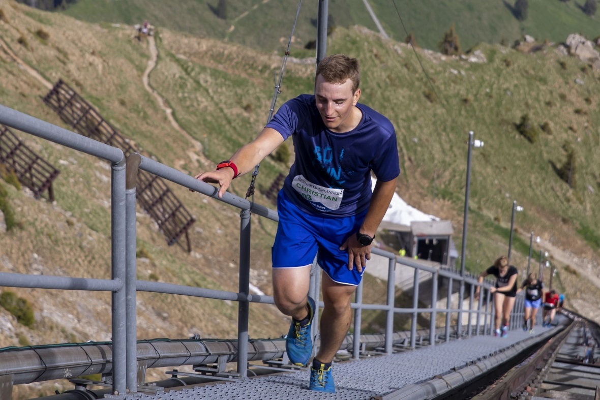 360 Teilnehmer aus 15 Nationen waren mit dabei, das heisst ein neuer Rekord für den Treppenlauf. Das Rennen konnte bei perfekten Wetterbedingungen für die Läuferinnen und Läufer durchgeführt werden. Der schnellste Läufer bei den Herren war Christoph Moser aus Bremgarten AG (01:06:52) und bei den Damen Monica Carl (01:19:33) aus Langenargen (D). Urs Eng aus Wimmis brauchte die Zeit von 01:25:47 und wurde 54. «Ich bin eigentlich ein Mountainbiker und kein Läufer. Der Treppenlauf ist direkt vor der Haustür, also gehe ich doch gerne hin» so Eng, der bereits das sechste Mal am Start war. Eng musste aufgrund der hohen Startnummer unterwegs viele Leute überholen. So arbeitete sich der Wimmiser in der Rangliste immer weiter nach oben. «Der Lauf war für mich perfekt, ich liebe es gerne warm. Am Samstag war es jedoch super und nicht zu kalt.»