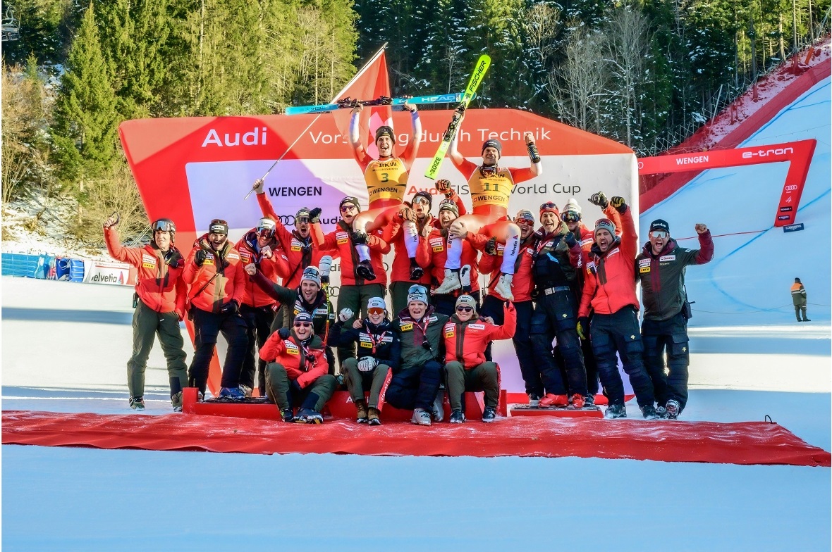 Einzigartig war auch die Leistung eines jungen Simmentalers: Mit der Startnummer drei auf der Brust hat am Freitag, 17. Januar die ganz grosse Stunde des Boltigers Franjo von Allmen geschlagen: Seine Fahrt auf der perfekt präparierten Rennstrecke war eindrücklich – seine Zeit von 1:47.65 leuchtete im Zielraum in Wengen grün auf – und so sollte es bleiben!