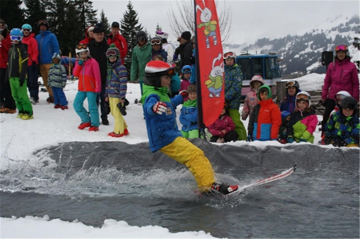 Ideallinie suchen beim Riesenslalom und Skicross, Besprechung der richtigen Taktik beim Gruppenwettbewerb und feuchtfröhliche Abkühlung beim Wassergraben. Gross und Klein liessen sich vom immer schlechter werdenden Wetter nicht aufhalten und feierten auf Einladung der Schweizer Ski- und Snowboardschule Zweisimmen zum Saisonschluss das traditionelle Frühlingsfest am Rinderberg.