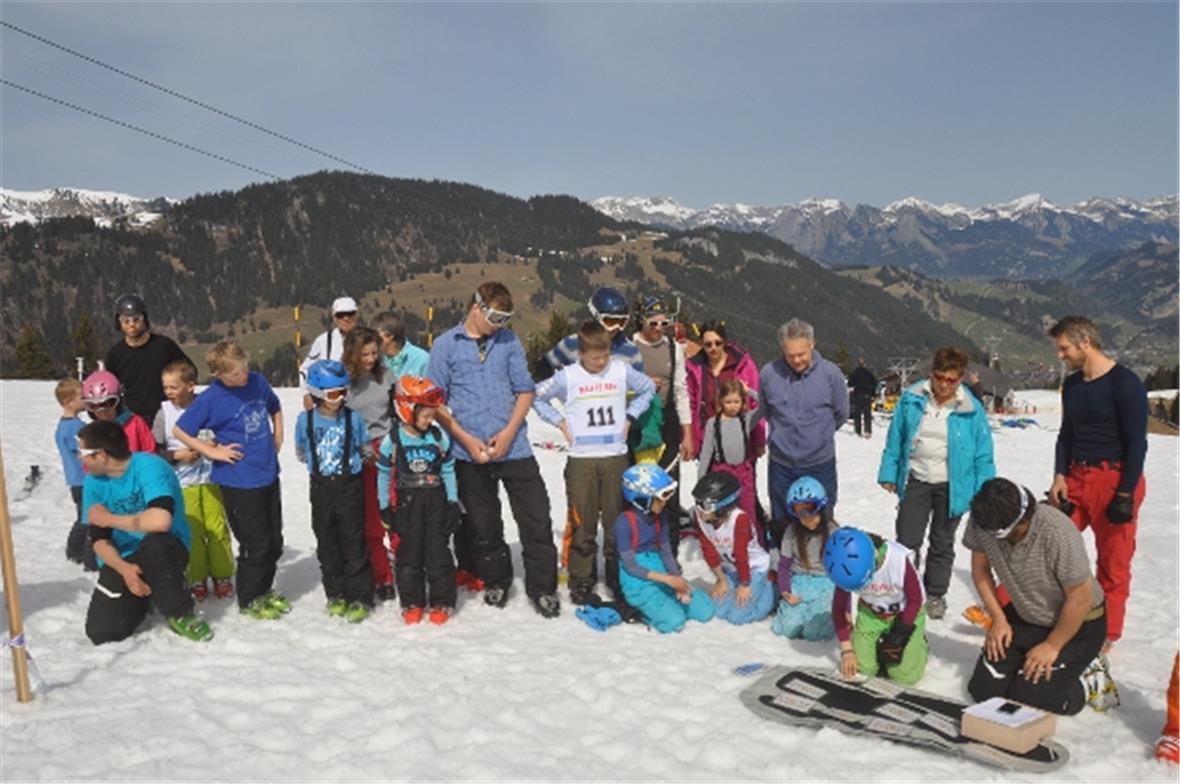 Höhepunkt und Abschluss für die Rennfahrer und Familien war die Rangverkündigung. Beim Umhängen der Medaillen und Auswählen der Preise vom Gabentisch fühlten sich alle als Sieger. Der Skischulleiter Kurt Müller bedankte sich bei den treuen Sponsoren Verein 1000 Freunde am Rinderberg, Raiffeisenbank Obersimmental, Hamilton Lodge, Intersport Matti, Tom Wittwer Sport, Papeterie Pfander, Landi Obersimmental, den Verantwortlichen der Gstaad Mountain Rides und allen Gästen für die alljährliche Unterstützung und die gute Zusammenarbeit.
