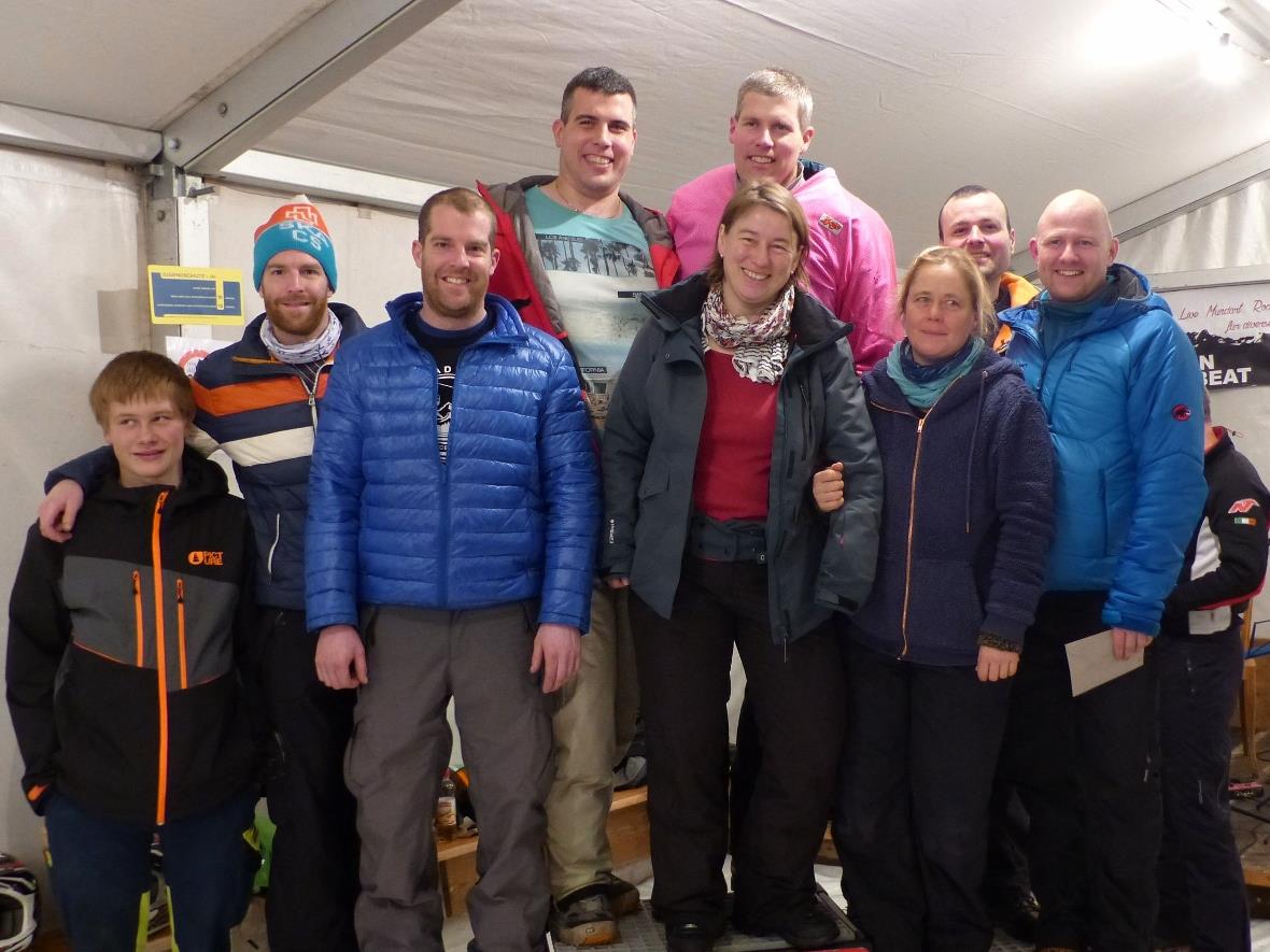 Nicht eine einzige Mannschaft hat sich zurückgezogen! Und so trafen gegen 18.30 Uhr erwartungsvolle Teilnehmer ein, vier Kinder- und fünf Erwachsene-Mannschaften zu je drei Teilnehmer. Nach einer kurzen Einführung schnappten sich die Beteiligten einen Pistenbock und konnten sich auf dem Skilift mit dem Gerät etwas vertraut machen.