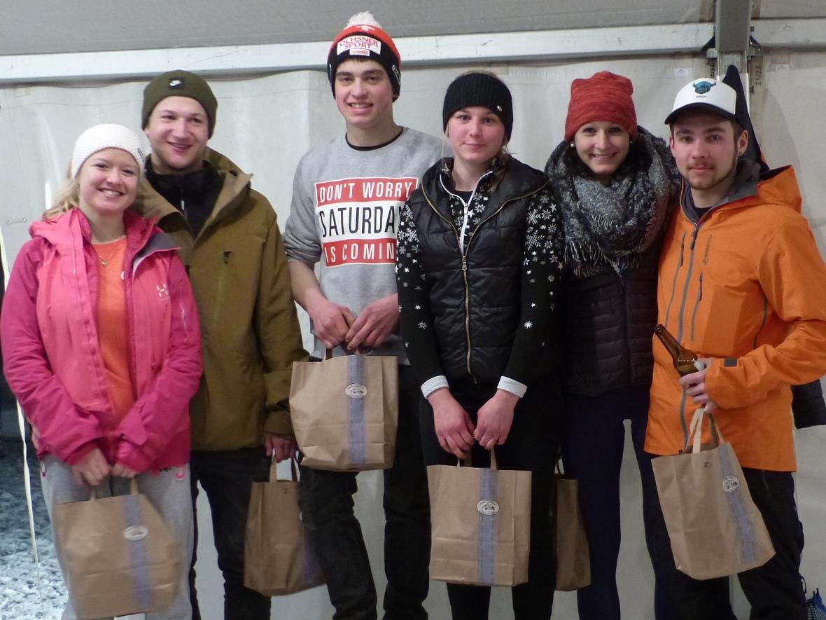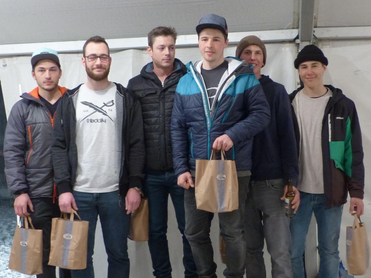 Natürlich gab es auch einige Regeln (keine Abkürzungen, nicht zu dritt auf dem Lift) zu befolgen, bei deren Widerhandlung wurden die Athleten zu Strafsekunden verdonnert, welche sie im Zielraum aussitzen mussten. So war ein verbissener Kampf bei den Herren zwischen den Startnummern sieben, eins und drei auszumachen. Diese drei Teams lagen auch ganz eng in Führung und die Zuschauer konnten erheiternde Szenen beobachten. Wechsel und «Stabübergabe» und anschliessendes Spurten auf den Skilift wurde von begeisternden Anfeuerungsrufen begleitet. Dies hat wohl einen der Athleten so sehr inspiriert, dass er einem bereits mit zwei Personen besetzten Liftbügel nach sprintete und sich als Dritten dazu gesellte. Dies brachte seinem Team 20 Strafsekunden ein. Dies bedauerten sogar die «Gegner».